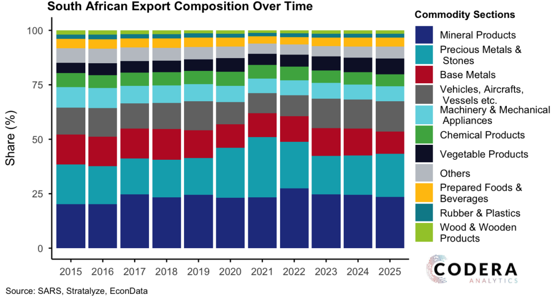 South Africa’s manufacturing industry is less integrated into global value chains (GVC) than in other small open economies. A recent SARB working paper shows that South Africa’s automotive industry uses fewer inputs from foreign upstream industries in production (‘backward GVC participation’) than many of our peers. South Africa’s ‘export intensity’ (how much of domestic value added is represented in final foreign consumption of goods or services of an industry) and ‘processing’ (the quantity of imports used as intermediate inputs that are subsequently exported) are shown to be comparatively low. But our automotive industry’s integration is lower than one would expect taking into account South Africa’s economic structure, resource endowments and industrial policies (as shown in the chart).