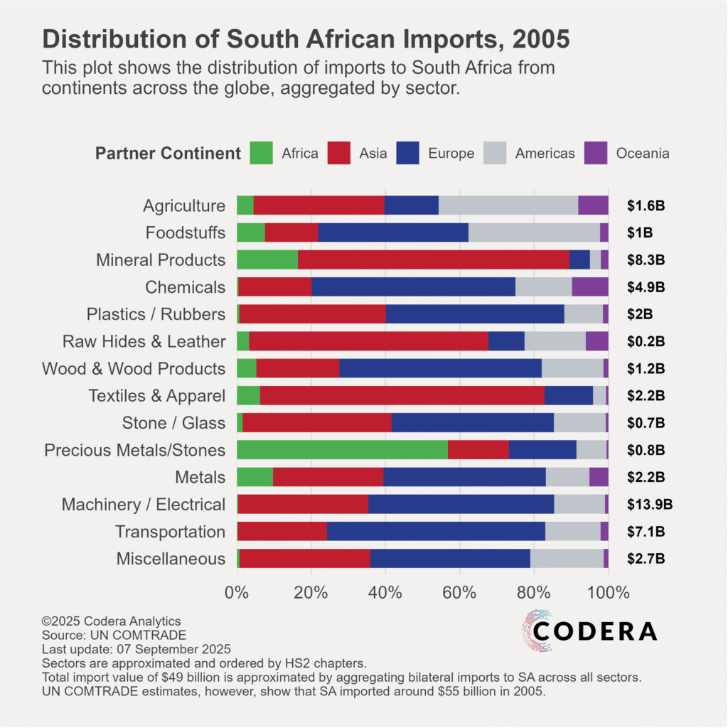 Today’s post by Jacques Quass De Vos shows the distribution of sources of imports for South Africa.