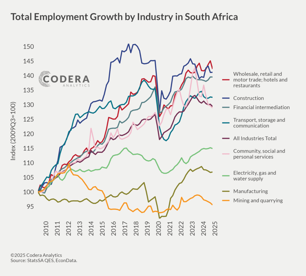 Employment growth by industry in SA