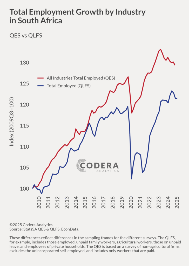 Today’s post by Jan-Hendrik Pretorius compares growth in industry employment using EconData’s QES and QLFS module. As we have shown in previous posts (here, here and here), the average growth picture in South Africa depends a lot on which data sources one considers, with the Quarterly Employment Survey (QES) suggesting faster average wage growth.