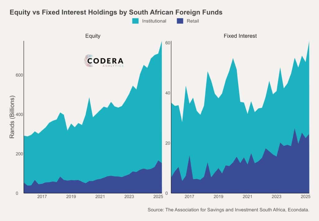 Today’s post by Lisa Martin shows the breakdown of total assets of foreign funds in South Africa between fixed income and equity assets.