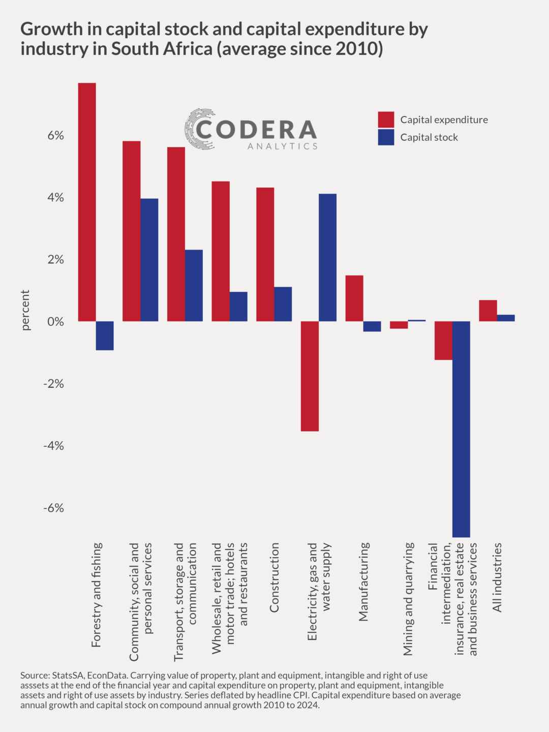 Intangible assets (such as software, data, intellectual property or a firm’s brand) have been a key driver of growth in high productivity growth economies over the last two decades. Today’s post shows that while there has been a strong increase in firm investment in computer software in South Africa, the real value of intangible capital has been fairly flat since 2005. This is a concern because the capital stock is a key driver of productivity growth and therefore long-term per capita income. In the United States and other advanced economies, the share of intangible assets in the total capital stock has risen relative to physical assets (such as plants and equipment), boosting productivity growth. In South Africa, the share of intangible capital remains at the same level it was in 2005. This raises questions around not only around the measurement of intangible assets in South Africa but also around what might explain why intangible investment is not growing as fast as in major economies.
