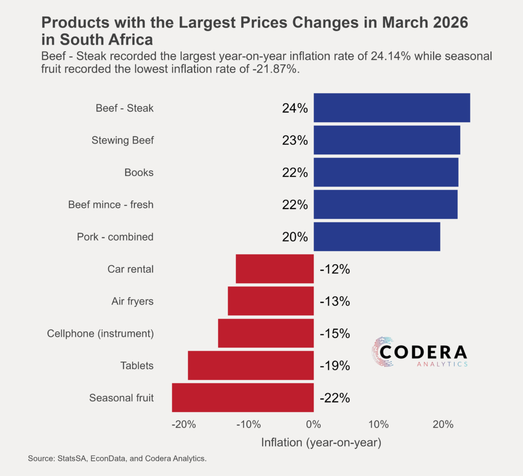 Today’s post by Oliver Guest shows the largest price changes in South Africa’s CPI in March 2026.