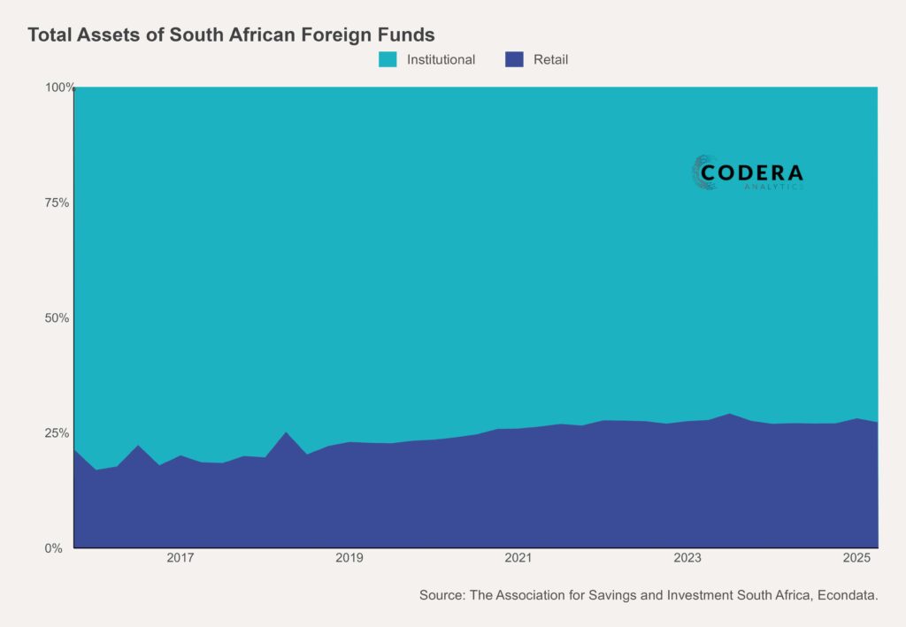 Today’s post by Lisa Martin shows that institutional funds are much larger than retail funds in the total assets of foreign funds managed by South African collective investment schemes.
