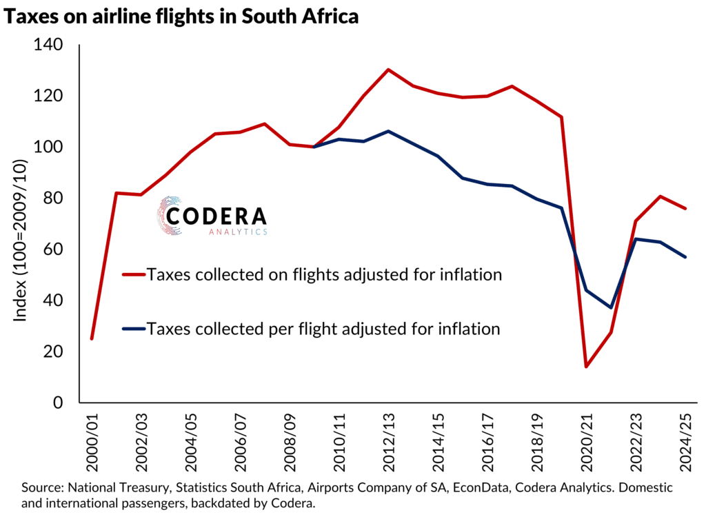 Today’s post shows that taxes on flights are still below their pre-pandemic levels, both when just adjusted for consumer prices or the number of flights.