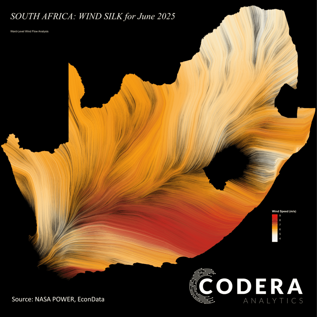 Today’s post by Riaan Grobler shows wind intensity and direction in South Africa in winter 2025.